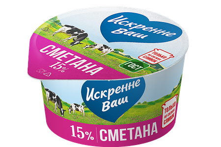Сметана ИСКРЕННЕ ВАШ – натуральный продукт с полезным составом. Сметана богата на витамины, кальций, калий и аминокислоты. Способствует улучшению работы желудочно-кишечного тракта, помощь в очистке организма от токсинов и шлаков.