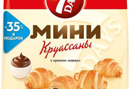 Круассаны "7DAYS" - готовая к употреблению выпечка из нежного теста с восхитительными кремовыми и джемовыми начинками. Мини-круассаны "7DAYS" - это много маленьких вкусных круассанов в одной упаковке. На выбор потребителя представлен широкий ассортимент кремовых и джемовых начинок. Прекрасно сочетаются с чаем и кофе, идеально подходят для того, чтобы разделить их с близкими. Превосходный выбор снэка для потребления дома и на ходу..