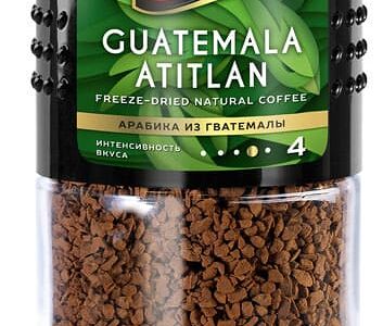 Кофе растворимый Jardin Guatemala Atitlan 95г производится из 100% гватемальской Арабики, выращенной в регионе озера Атитлан. Вулканическая почва, а также смена сухих и дождливых сезонов благотворно влияет на созревание одного из лучших сортов кофе. Обжаренные кофейные зерна подвергаются сушке замораживанием (технология freeze dried), которая позволяет сохранить вкус и аромат натурального кофе. Крупные гранулы быстро растворяются в горячей воде, наполняя ваш напиток ровным и полнотелым вкусом с легкой сладостью и фруктовыми нотками в послевкусии. Чтобы приготовить одну порцию, положите в чашку 1-2 чайные ложки кофе и залейте горячей, но не кипящей водой.