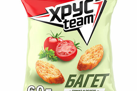 Сухарики Хрустим Багет Томат и зелень - это оригинальные хрустящие снеки с воздушной пористой структурой и пряным вкусом с нотками спелых помидоров, ароматной петрушки и чеснока. Из-за своей овальной формы внешне Хрустим похожи на тонко нарезанные ломтики миниатюрного багета. Сухарики Хрусteam приятно хрустят и с легкостью раскусываются. Хрусteam можно употреблять в качестве вкусного и сытного перекуса, легкой закуски к прохладительным напиткам, подавать в качестве гренок к крем-супу, использовать для приготовления знаменитого салата Цезарь.