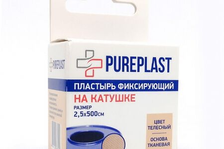 Пластырь фиксир.ПЮРПЛАСТ ткан.осн. 2,5*500см пласт.фут.тел. доставка