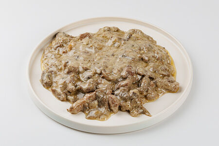 Печень говяжья по-строгановски с грибами ВкусВилл доставка