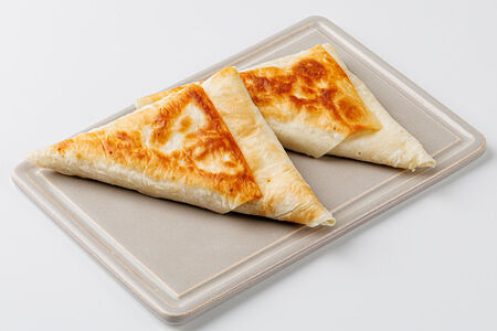 Сведения о составе: лаваш (мука пшеничная хлебопекарная высшего сорта, вода питьевая, соль пищевая), начинка (грибы шампиньоны свежие, сливки питьевые пастеризованные м.д.ж. 10%, масло подсолнечное рафинированное дезодорированное, лук репчатый свежий, сыр «Сулугуни» м.д.ж. в сухом веществе 45% (молоко пастеризованное, закваска термофильных молочнокислых микроорганизмов, соль пищевая, молокосвертывающий ферментный препарат микробного происхождения), масло сладко-сливочное м.д.ж. 82,5%, мука пшеничная хлебопекарная высшего сорта, соль пищевая, грибы белые сушёные гранулированные, грибы вешенки быстрозамороженные, мускатный орех молотый, перец белый молотый). Продукция производится на предприятии, где используются аллергены: арахис, горчица, кунжут, моллюски, ракообразные, рыба, орехи, сельдерей, соя, яйца.Пищевая ценность: белки 7,9 г; жиры 21,2 г; углеводы 30 г; 342,4 ккал