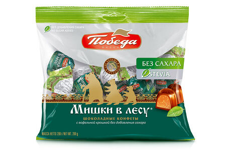 Конфеты шоколадные Победа вкуса Мишки в лесу с нежной начинкой и вафельной крошкой доставка