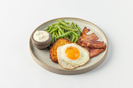 Драник с беконом, фасолью и яйцом доставка