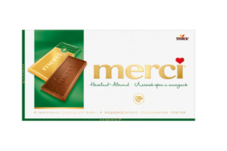 Шоколад молочный Merci с дроблёным лесным орехом и миндалём доставка