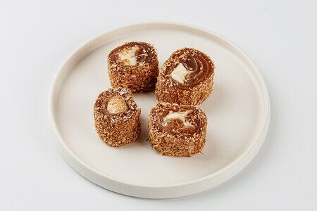 Сведения о составе: сахар, крахмал кукурузный, регулятор кислотности - лимонная кислота, какао-порошок, шоколад молочный (сахар, какао-масло, молоко сухое цельное, молоко сухое обезжиренное, какао тертое, эмульгатор - лецитины (соевый), экстракт ванили), ядра ореха фундука обжаренные измельчённые, ядра арахиса обжаренные измельчённые, стружка кокосовая (мякоть кокоса). Продукция производится на предприятии, где используются аллергены: злаки, содержащие глютен, кунжут.Пищевая ценность: белки 3,5 г; жиры 2 г; углеводы 84,3 г; 369,2 ккал