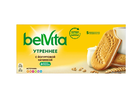 Печенье BelVita Утреннее Сэндвич витаминное с цельными злаками и йогуртовой начинкой доставка