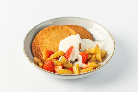 Панкейки банановые с клубникой и сливочным соусом доставка