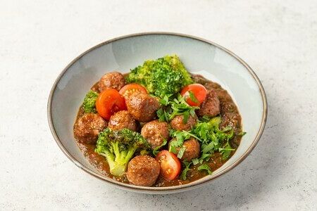 Фрикадельки "не мясо" в томатно-шпинатном соусе с брокколи доставка