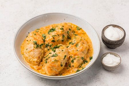 Большая порция ленивых голубцов в сметанном соусе доставка