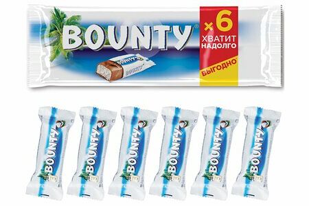 Bounty шоколадный батончик с нежной мякотью кокоса, пачка 6шт по 27,5г доставка