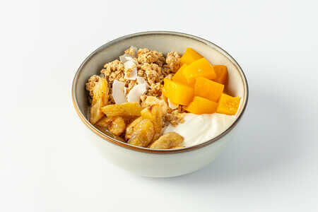 Парфе-гранола тропическая с карамелизированными бананами и персиками доставка