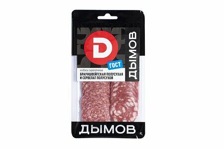 Колбаса Дымов Сервелат, Брауншвейгская, сырокопченая, нарезка доставка