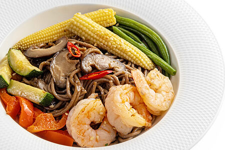 Паста Соба с креветками и соусом Терияки доставка