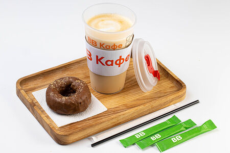 Комбо капучино 0,4 и Пончик веган с семенами гречихи в шоколаде доставка