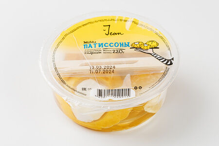 Сведения о составе: Патиссоны, сахар, соль, уксус, подсолнечное масло, сливочный сыр (Сливки, молоко, лимонная кислота), розмарин.Пищевая ценность: белки 11,4 г; жиры 24 г; 261,6 ккал
