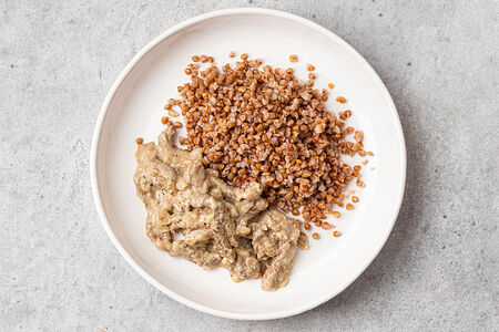 Бефстроганов из говядины с гречкой отварной доставка