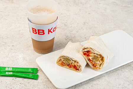 Комбо капучино 0,4 на фундучном напитке и сэндвич-ролл "Фалафель" с хумусом и овощами, кафе доставка