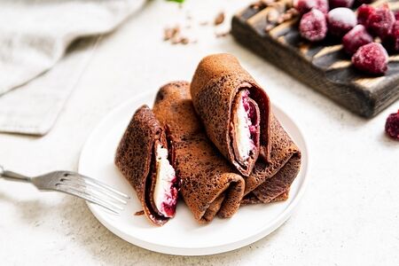 Блины шоколадные с маскарпоне и вишней доставка