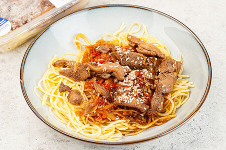 Вок рамен с курицей в апельсиново-имбирном соусе доставка