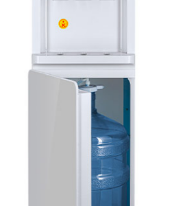 Эффектный дизайн позволяет вписать кулер в интерьер современного офиса: бутыль с водой полностью скрыта в нижнем отсеке, дверца которого имеет глянцевую стеклянную поверхность. Корпус белого цвета с серебристыми вставками на передней панели.