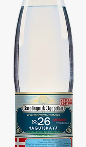 «Нагутская-26» - Минеральная природная питьевая лечебно-столовая вода термального происхождения. Благодаря уникальному комплексу минералов в своём составе вода способствует восстановлению работы пищеварительной эндокринной, сердечно-сосудистой систем организма. ------------------- Газация Газированная Гидрокарбонаты (максимум) 4 000 Гидрокарбонаты (минимум) 2 300 Кальций (максимум) 100 Кальций (минимум) 1 Магний (максимум) 50 Магний (минимум) 1 Сульфаты (максимум) 150 Сульфаты (минимум) 30 Хлориды (максимум) 700 Хлориды (минимум) 200 Страна производитель Россия