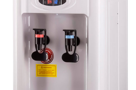 Компактный настольный кулер для воды Aqua Work 0.7-TDR-ST c нагревом, электронным охлаждением, экономичным потреблением электроэнергии и индикацией текущей температуры в горячем и холодным бачках.
