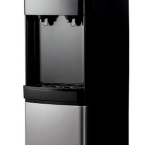 Компактный напольный кулер для воды без охлаждения. Без шкафчика. Современный дизайн. Для дома. Для офиса. Бутылеприёмник, верхняя и передняя панель изготовлены из высококачественного, устойчивого к ультрафиолету ABS пластика чёрного цвета, нижняя панель из нержавеющей стали, боковые панели из пластика чёрного цвета. Два крана, управление кнопками - горячая и холодная вода. Кран горячей воды имеет "защиту от детей". Пригоден для эксплуатации в очень жарком климате - температура эксплуатации кулера от 10 до 38 градусов Цельсия.