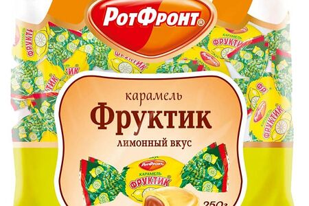 Карамель Фруктик лимонный вкус 250г - это кисло-сладкий леденец с ароматной фруктовой начинкой (яблочное пюре с лимоном) в хрустящей карамели, произведенный на одном из старейших кондитерских предприятий России "Рот Фронт" (в 2016 году фабрике исполнилось 190 лет). Каждая конфета упакована в индивидуальную обертку, поэтому вам будет удобно отсыпать горсть в карман или сумочку, чтобы потом угостить своих друзей или коллег и полакомиться самому. При хранении рекомендуется избегать попадания прямых солнечных лучей.