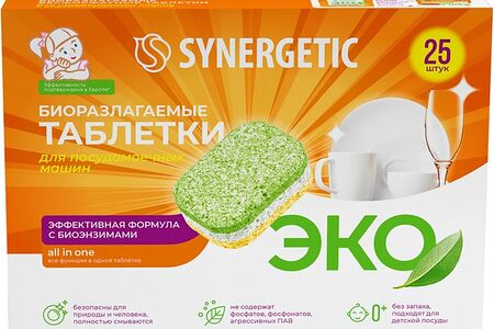 Таблетки для посудомоечных машин Synergetic 25шт доставка