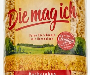Макароны 3 Glocken Die mag ich Алфавит 250г - натуральные макаронные изделия немецкого производства, изготовленные из муки твердых сортов пшеницы (дурум) с добавлением яиц высшего качества и родниковой воды. Макароны быстро варятся, сохраняя форму и красивый золотистый цвет. Макароны в форме букв прекрасно подходят для приготовления супов. Благодаря своей форме они особенно полюбились детям. Вы можете сделать обед не только вкусным, но и познавательным для ребенка. Чтобы получить идеальный вкус, следует варить макароны в соответствии с рекомендациями, указанными на упаковке. Для удобства хранения упаковка оснащена клейкой лентой.