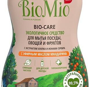 Средство для мытья посуды BioMio Bio-Care с эфирным маслом мандарина 750мл универсальное моющее средство с ионами серебра, обеспечивающими антибактериальный эффект. Изготовлено на основе натуральных компонентов без добавления фосфатов, синтетических ПАВ, красителей, ароматизаторов. Идеально подходит для мытья овощей, фруктов, детских принадлежностей и посуды. Активно работает даже в холодной воде, смывается без следа, обладает гипоаллергенными свойствами, экономично расходуется, имеет ненавязчивый цитрусовый аромат. Благодаря биоразлагаемой формуле не загрязняет почву, воду и воздух. Мягко и деликатно воздействует на кожу рук, не вызывая сухости и раздражений. Упаковка эргономичный флакон с удобным дозатором. BioMio линейка эффективных и безопасных ЭКО-средств для дома. Вся продукция этой марки подходит для людей с чувствительной кожей, что подтверждено дерматологами.