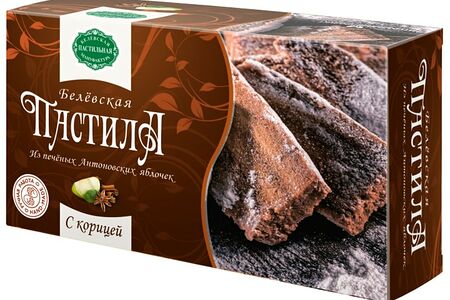 Пастила Белевская пастила с корицей 200г производится по старинной русской технологии: сначала яблоки запекают в печи, потом снимают шкурку и отделяют мякоть, которую взбивают с сахаром и яичным белком. В воздушную смесь добавляют корицу и запекают пластами. Промазывают белком, обрезают края и посыпают сахарной пудрой. Пастила обладает приятным кисло-сладким вкусом с пряными нотками корицы. Появилась она в конце 19 века в России, ее создал купец Амвросий Прохоров: он собрал десяток народных способов приготовления этого лакомства, обобщил и получил универсальный рецепт, который практически не изменился и по сей день. Белевская пастила является традиционным русским десертом, который очень популярен как в России, так и в Европе.