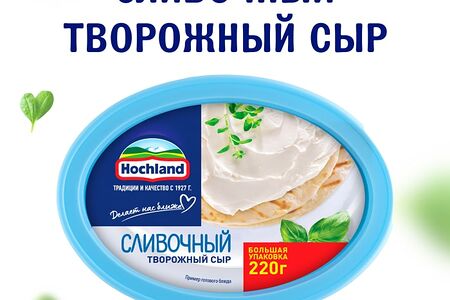 Сыр творожный Hochland сливочный, 60%, 220г сделан из полезного натурального молока. Он сочетает в себе пользу творога и свежесть молодого сыра. Продукт обладает пластичной консистенцией, сливочным ароматом и нежным вкусом. Идеально подходит для приготовления несложных блюд: бутербродов, закусок с овощами и мясными ингредиентами. Благодаря мягкой консистенции и однородной текстуре он отлично намазывается на ломтик хлеба, поджаренный тост и хрустящий крекер. Сливочный творожный сыр можно использовать в качестве основы для начинок блинов, булочек, пирогов, сочетая его с зеленью, грибами, фруктами и джемами. Сыр отлично дополнит оладьи с красной рыбой. Из него получится отличный соус к мясу или гренкам из бородинского хлеба, достаточно добавить немного чеснока и перца. Натуральный состав и классический сливочный вкус делают творожный сыр подходящим для всей семьи. Продукт упаковывается в компактные ванночки из пищевого пластика с фольгированной мембраной и герметично закрывающейся крышкой.