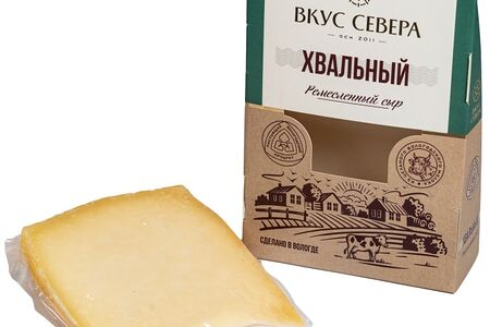 Сыр «Хвальный» сделан по рецептуре всем знакомого сыра гауда, одного из самых известных сыров. Это голландский полутвердый сыр из цельного коровьего молока, без использования растительных жиров, трансжиров и заменителей молочного жира, один из самых популярных сыров в мире. Вкус сыра — нежный сливочный, консистенция — полутвердая, эластичная, однородная. Жирность в готовом продукте — 45-65%. Срок созревания 45 суток. Сыр добавляют в различные горячие блюда, салаты, супы, соусы, выпечку и сэндвичи (сыр отлично поддается плавлению). «Хвальный» однозначно займет почетное место в составе сырной тарелки и будет прекрасно сочетаться с благородными винами.