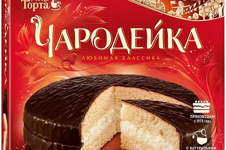 Торт Чародейка бисквитный 650г легендарный торт, изготовленный из высококачественных, отборных ингредиентов. В основе 2 пышных бисквитных коржа, прослоенных нежнейшим кремом. Поверхность торта залита шоколадной глазурью. Кусочек этого лакомства станет идеальным дополнением к чашечке свежезаваренного черного чая без сахара. Чародейка непременно порадует вас отменным вкусом и приятной, тающей во рту текстурой. Кондитерско-булочный комбинат Черемушки входит в десятку крупнейших российских производителей хлебобулочных и кондитерских изделий. Вся продукция соответствует требованиям ГОСТа РФ, а также международным стандартам качества и безопасности пищевых продуктов.