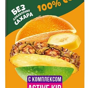 100%-ный сок "Добрый Мультифрукт" с витаминным комплексом Active Kid (B2, B3, B5, B12), без добавления сахара, консервантов и красителей в удобной упаковке 200 мл с трубочкой для питания ребенка раннего возраста. Обладает натуральным, сбалансированным вкусом, а витаминный комплекс Active Kid дает ребенку энергию для развития. Упаковка продукта может быть в цветном или белом виде.