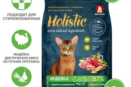 Сухой корм для кошек Зоогурман Holistic Индейка с грушей и розмарином 1.5кг доставка