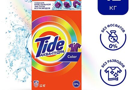 Стиральный порошок Tide Аква-Пудра Color автомат 80 стирок 12кг позволяет поддерживать одежду всей семьи в отличном состоянии. Стиральный порошок Tide Аквапудра Color прекрасно справляется даже с самыми трудновыводимыми пятнами на одежде, сохраняя яркие цвета стирка за стиркой. Аквапудра растворяется, только консувшись воды, и моментально активируется, чтобы обеспечить кристальную чистоту вашей одежды без разводов.
