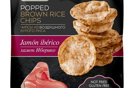 Чипсы Rice Up Цельнозерновые из воздушного бурого риса со вкусом хамон Иберико 60г доставка