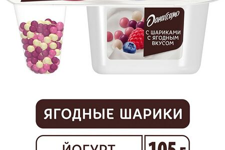 Йогурт Даниссимо Фантазия с хрустящими шариками с ягодным вкусом 6.9% 105г доставка