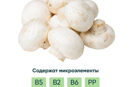 Шампиньоны 0.4-0.6кг – свежие грибы, отвечающие самым строгим стандартам качества и безопасности. Могут использоваться для приготовления первых блюд: супов, супов-пюре и крем-супов. Отлично подойдут для салатов, вторых блюд, соусов, закусок, начинок для пиццы, пирожков и пирогов. Гармонично сочетаются с овощами, рисом, гречневой крупой, курицей, свининой, сметаной, сыром, сливками, семгой. Шампиньоны можно жарить, варить, тушить, запекать, мариновать, солить – в любом случае они послужат идеальным дополнением к рациону вашей семьи. Эти грибочки очень полезны: они обогащают организм клетчаткой, витаминами B2, В5 и PP, цинком, селеном, медью и фосфором; выводят токсины; снижают уровень плохого холестерина; помогают продлить молодость и укрепить иммунитет.