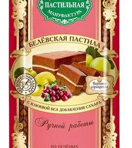 Сведения о составе: Яблоки, клюква, яичный белок.Пищевая ценность: 276,4,0,65Условия хранения: 21,8Срок годности в днях: 365Страна изготовления: РоссияСведения об упаковке: Картонная упаковкаПроизводитель: Белёвская пастила