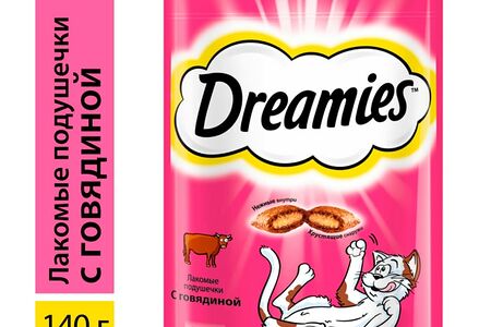 Лакомство для кошек Dreamies подушечки с говядиной 140г доставка