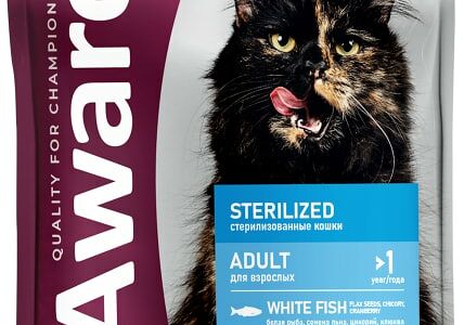 Сухой корм для кошек Award Sterilized для стерилизованных с белой рыбой с добавлением семян льна клюквы и цикория 400г доставка