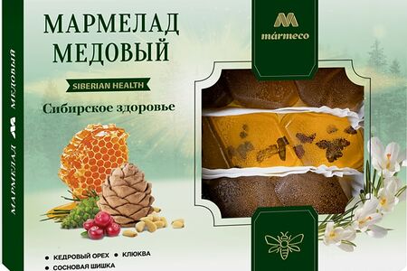 Мармелад Marmeco Медовый Сибирское здоровье с кедровым орехом клюквой и шишкой сосновой 200г доставка
