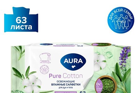 Влажные салфетки Aura освежающие для всей семьи 63шт доставка