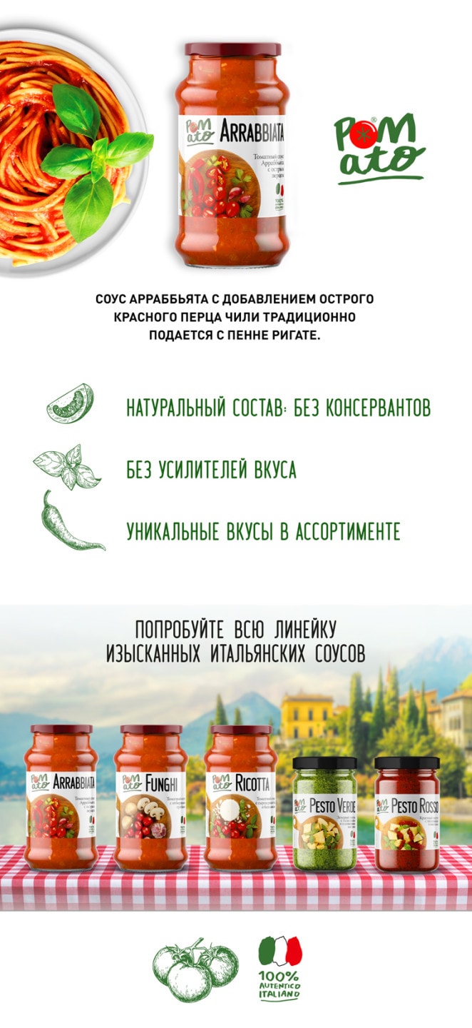 Соус Pomato томатный аррабьята с острым перцем 350г доставка