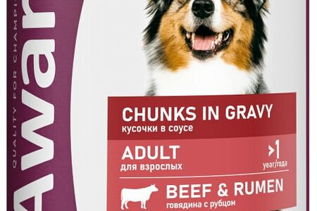 Влажный корм для собак Award кусочки с говядиной и рубцом в соусе 750г доставка